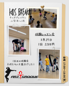 キッズブレイキン体験レッスン会は3月27日にも開催予定です。