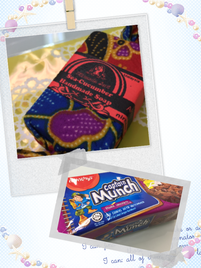 バティックの布に包まれたナマコ石鹸とチョコクッキー(*›◡‹*)
