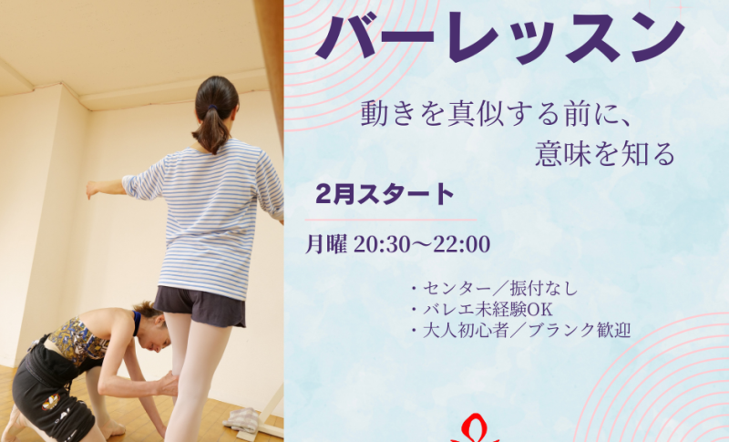 年末年始を挟み、準備が追いつかないまま新年のレッスンがスタートしてしまいましたが、2026年1月より、クラス内容をより正確にお伝えするためにクラス名を変更しました。 これまで「バー・フロア」という名前を使っていた理由 当 […]