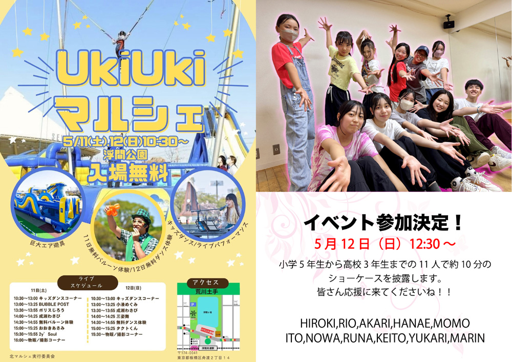 5月12日(日)浮間公園でのイベント【Uki Uki マルシェ】にキッズ、ティーンズのメンバーが出演します!